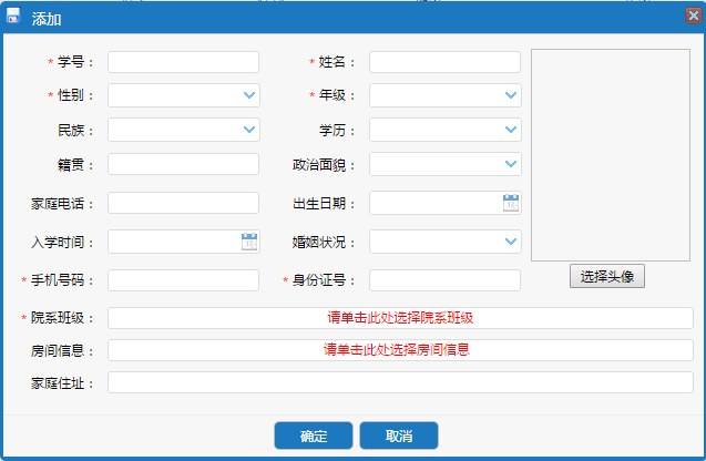 學生信息:【管理員】可以維護學生信息,包括學號、姓名、院系、照片、身份證等信息,對學生信息進行添加、刪除、修改等操作。