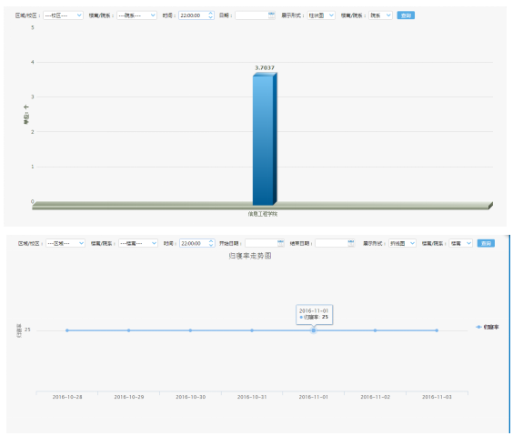 樓宇維度:以樓宇為單位,查詢目標樓宇的歸寢率,可以以列表、柱狀圖、折線圖的形式展示