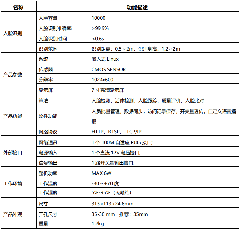 ? 人臉識別準確率高達 99.9%; ? 人臉識別速度小于 0.6 秒;