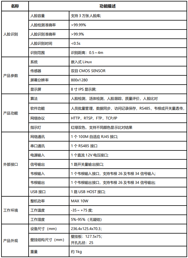 ? 人臉識別準確率高達 99.9%; ? 支持雙目活體人臉檢測; ? 支持安全帽檢測: